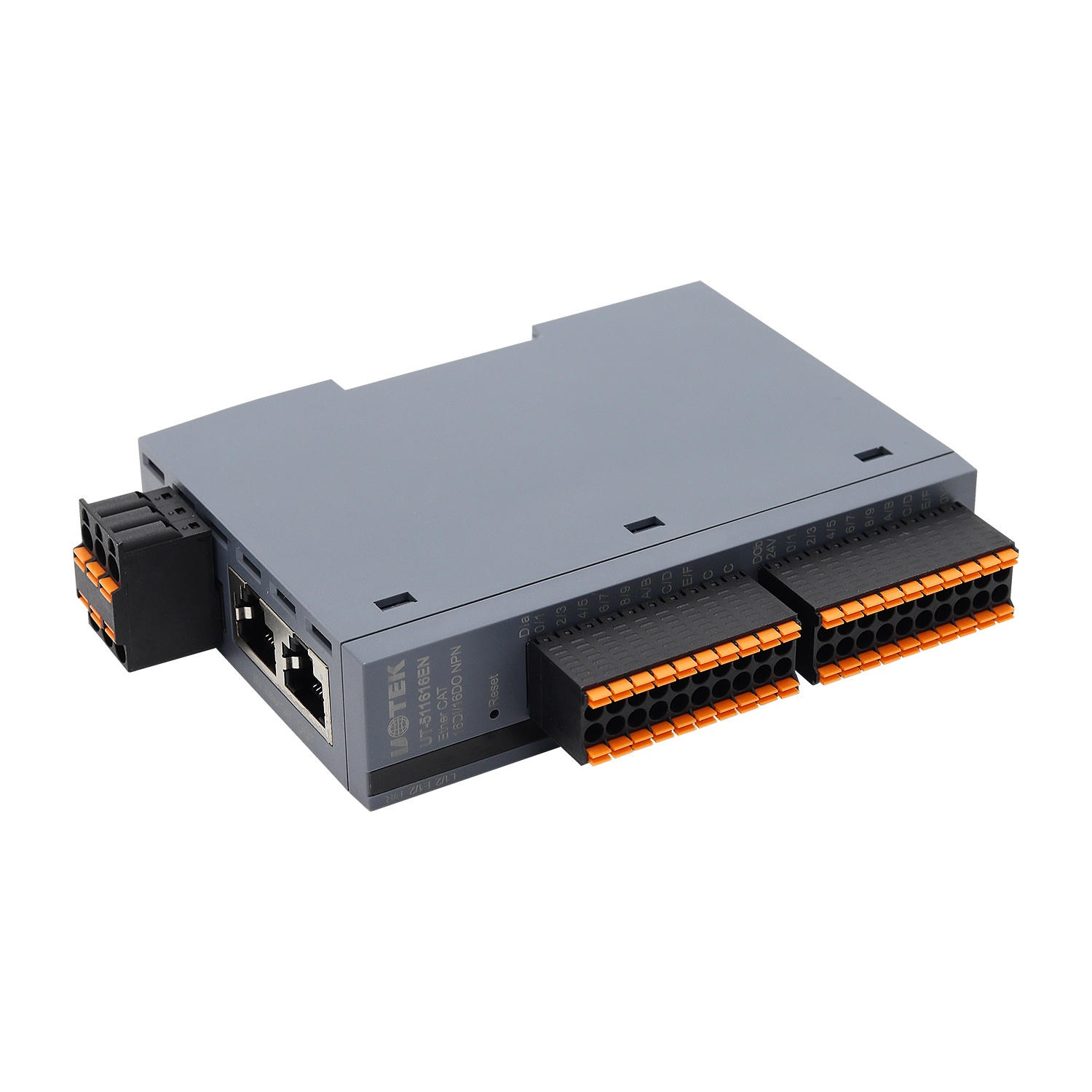 UT-511616E基于2.1EtherCAT總線控制協(xié)議光電隔離數(shù)據(jù)并行輸入輸出I/O 控制器是 16 通道數(shù)據(jù)輸入,16 通道數(shù)據(jù)輸出,每個數(shù)據(jù)輸入或輸出通道相類似若干電腦接口。