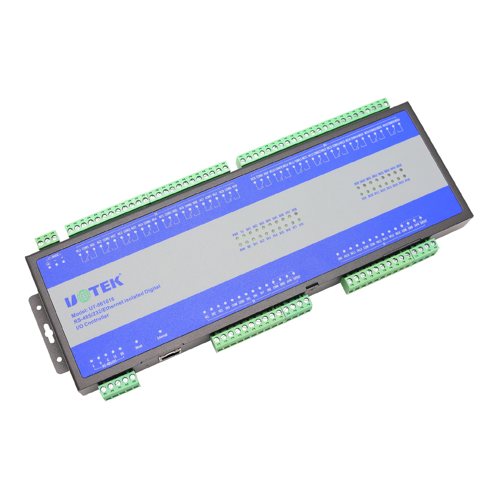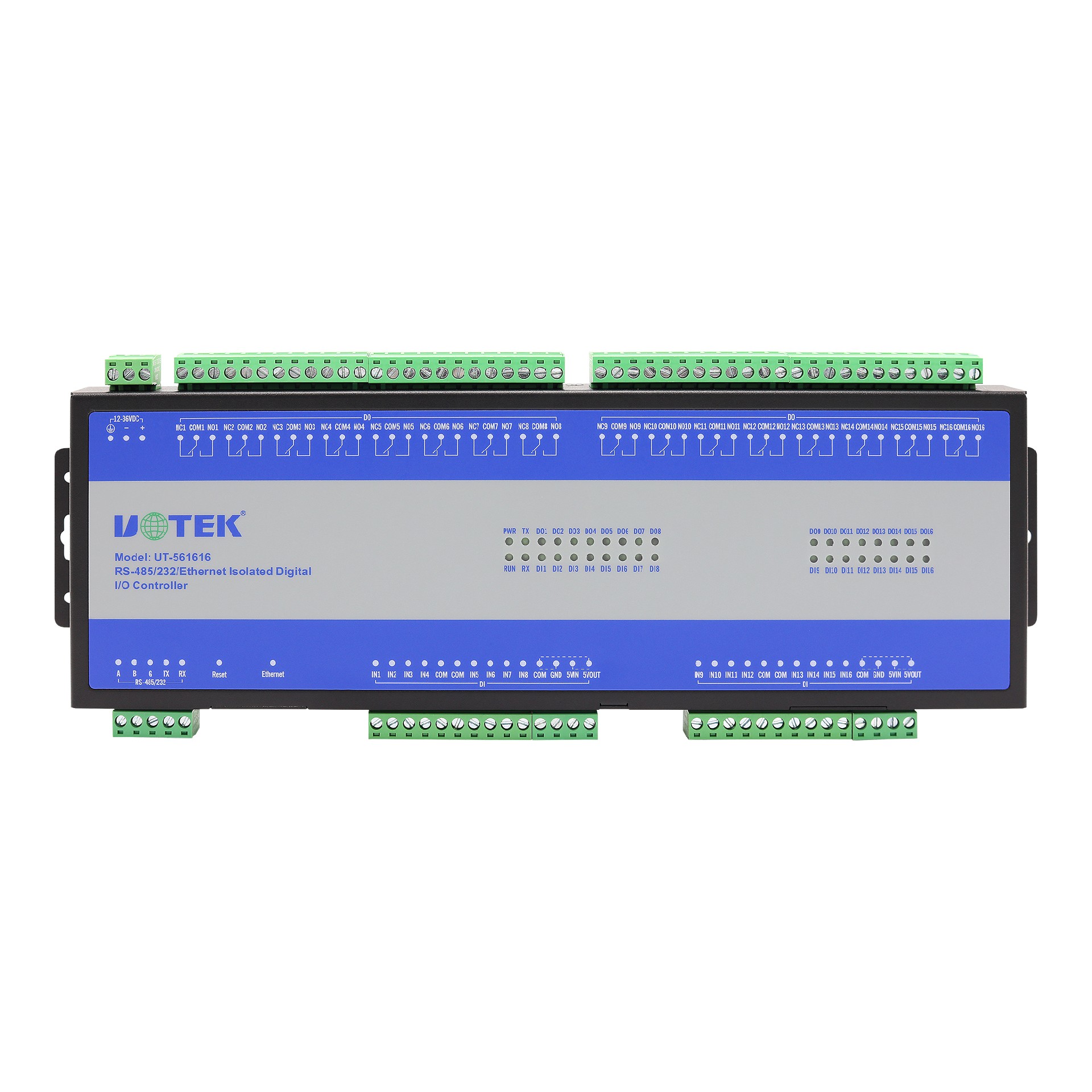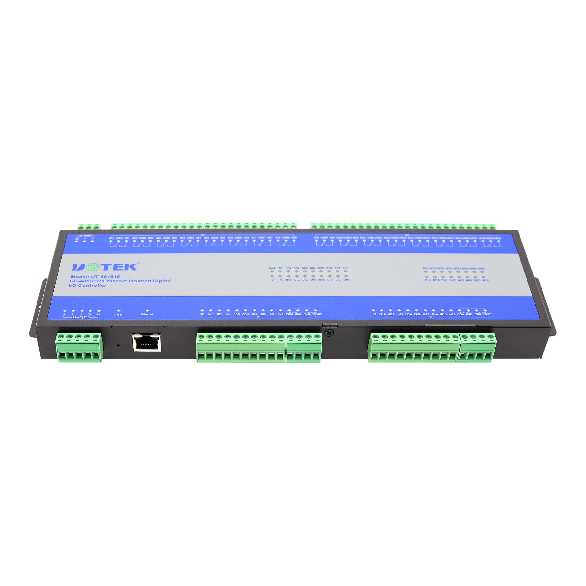 UT-561616是一款使用以太網或RS-485/232進行遠程控制的 IO 控制器,可使用Modbus TCP以太網通信進行控制,也可以選擇RS-485總線進行控制,支持 Modbus RTU 協議,該產品使用方便,通過可靠的以太網或RS-485對開關量輸入進行采集、對繼電器輸出進行控制,繼電器輸出負載電流16A@AC250V。
